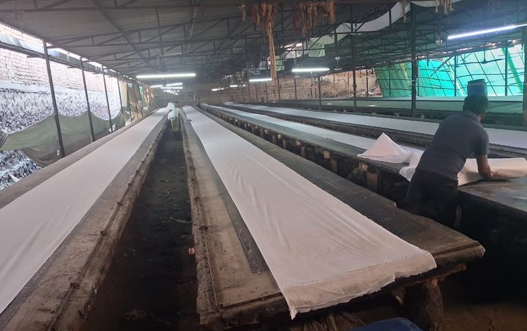 Our facility is equipped with modern machinery to handle bulk orders for domestic and international markets, including Dubai, Africa, and the Middle East. We pride ourselves on delivering 100% pure cotton fabrics with export-quality stitching and vibrant, long-lasting dyes."